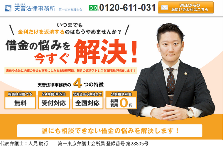 電話やメールでの相談料が無料。初期費用0円で済ますことができるので、借金に困っている時は一度相談してみても損はないです。